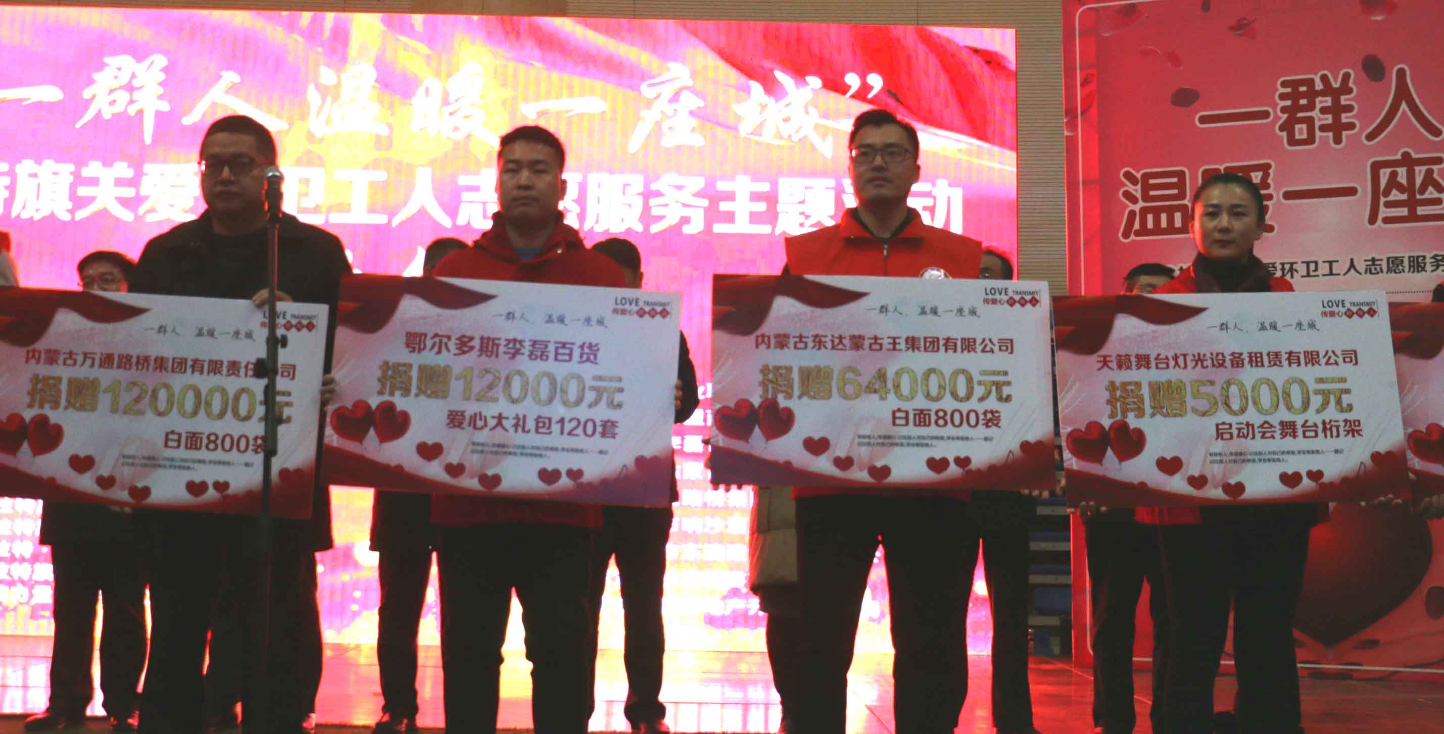 為踐行社會主義核心價值觀,大力弘揚“奉獻、友愛、互助、進步”的志愿服務精神,營造全社會尊重環(huán)衛(wèi)工人、支持環(huán)衛(wèi)工作、熱愛環(huán)衛(wèi)事業(yè)的意識和氛圍,12月23日,由達拉特旗旗委宣傳部、文明辦、公共事業(yè)綜合保障中心等十多個單位聯(lián)合發(fā)起并舉辦的“一群人溫暖一座城一一關愛環(huán)衛(wèi)工人志愿服務主題活動”在達特特旗體育館隆重舉行。旗委常委、宣傳部部長崔永平,旗人大副主任陳柏樹,政府副旗長王帥,政協(xié)副主席 趙謙宇,旗委宣傳部副部長郭雪峰、杜永茂,住房和城鄉(xiāng)建設局局長馬湧強,公共事業(yè)綜合保障中心主任韓紅,旗文明辦主任任劍,旗工商聯(lián)副主席高曉霞,旗總工會副主席高有才,旗紅十字會副會長石向前,旗融媒體中心主任吳得勝等領導出席儀式,來自各界的志愿者、愛心企業(yè)、愛心商家、愛心人士等參加了活動。東達集團綜合辦副主任張中東代表集團向辛勤工作的環(huán)衛(wèi)工人們捐出價值64000元的愛心物資,以實際行動在寒冷的冬日里為他們送上了一份暖暖的關懷與關愛。